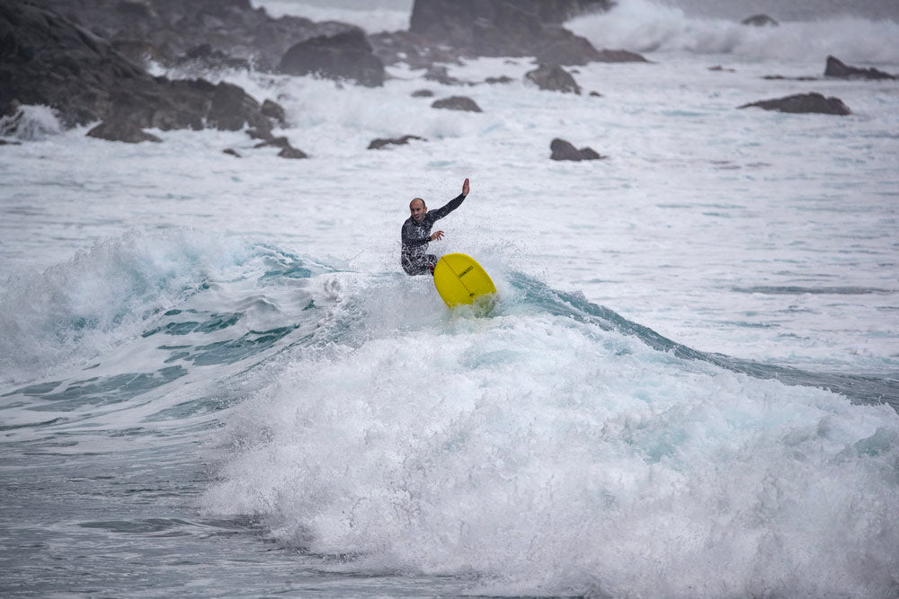 Le Mini Simmons « À toute berzingue » est la board au take off facile dans les vagues molles. Son rocker ultra tendu et son shape très compact lui permette de passer les sections même dans des conditions médiocre. Plus besoin de pomper pour accélérer, appuyez simplement sur votre pied arrière et laissez ce tapis volant faire le job. Une vitesse naturelle et une très bonne relance pour un surf de très petite taille.